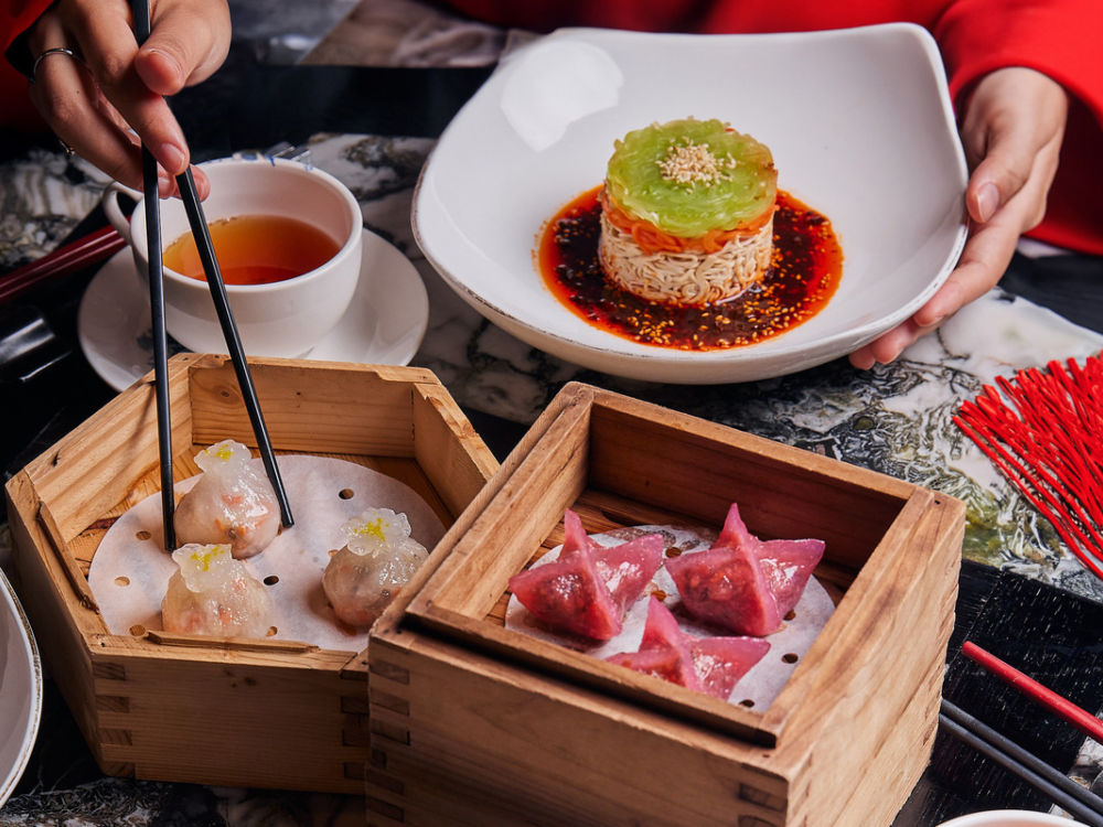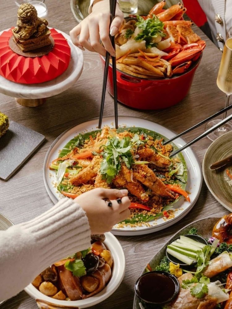 Over at Hue Dining, guests can dig into the four-course Chinese banquet-inspired dinner menu available only on 11 February. The dining journey begins with a selection of creative canapés such as mini pineapple bun with foie gras and arancini fried risotto balls topped with Cantonese preserved sausage with soy aioli. The experience continues with a choice of starters and mains, with highlights including the ham hock terrine, millefeuille with pumpkin purée, Atlantic cod wrapped in crispy kataifi, and dumplings with smoked stracciatella filling. The menu concludes with mango and pomelo pavlova or yuzu tartlet. Make a booking here.