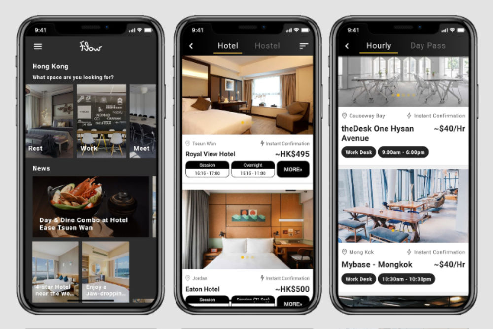 With so many options to choose from, how do you know what spaces are available right now without searching through individual hotels and co-working spaces for their rates? We’d suggest using the Flow app. Flow is the “platform for space”, an all-in-one platform providing a seamless experience to help travellers book hourly hotel rooms and office spaces to work or rest for less than a day. Through Flow, you can book your daytime hot desk or workspace for a few hours to half a day from the comfort of your palm. It is as easy and accessible as a few clicks with instant confirmation.But just because you’re travelling doesn’t mean you’re out to splurge. Flow offers some of the lowest prices for instant confirmation bookings with hotels in Hong Kong. No more queuing and back-and-forth enquiries with this one-stop solution! Flow is the easiest way to become familiar with the concept of the “timeslot hotel”. Plus, you can conveniently reserve rooms at the very last minute, with the same low costs and flexibility. As Flow puts it: “Why book for the whole day if you only need to stay for just a few hours?” FlowTo learn more about Flow and where to download the app, click here.