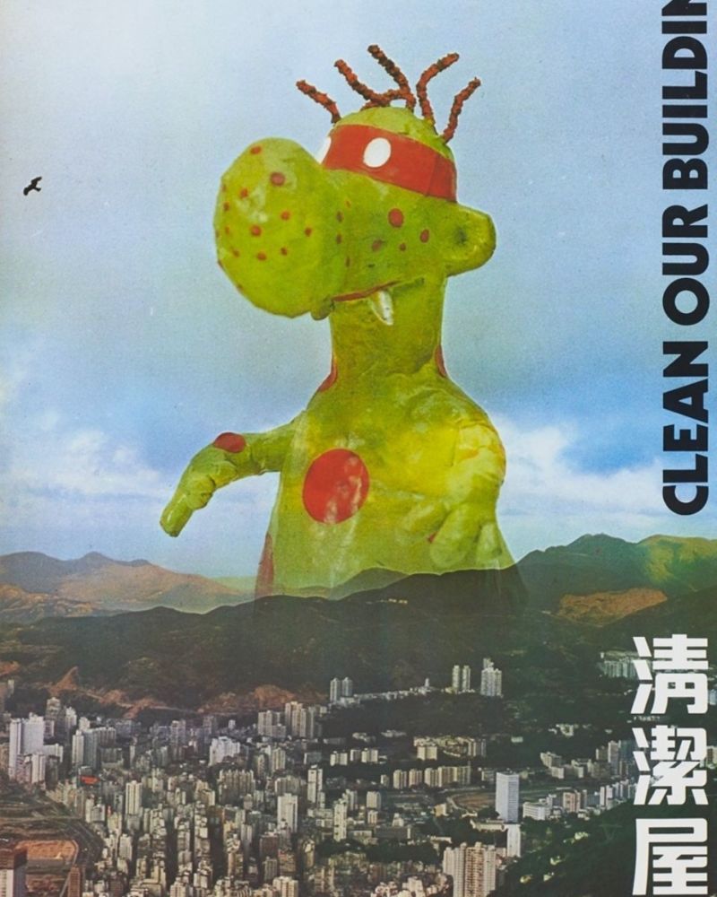 A green dragon with orange spikes dressed up in a pair of hardy denim overalls, Ah Tak’s design echoes Hacker’s past composition, but with updated elements. The name itself shows colloquial Cantonese wordplay, meaning something along the lines of “the righteous one,” whilst also being worked into the pun asserting that “everyone can keep Hong Kong clean” (清潔香港人人都德; ching1 git3 heung1 gong2 yan4 yan4 dou1 dak1).