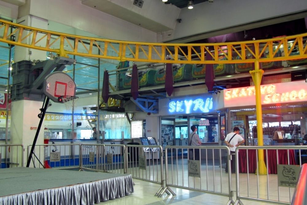 Dragon Centre, a landmark of Sham Shui Po, houses the subdivided Apple Mall on its fifth to seventh floors, with dozens of consignment stores and shops selling K-pop merchandise. Dragon Centre is also known for its use of cart stalls in the mall and the Sky Train, an indoor rollercoaster. Now defunct, the Sky Train used to run on top of the Sky Rink and the food court on the eighth floor until the mid-2000s, charging about above the heads of diners while the noise of the ride would ring throughout the whole mall. While the train no longer runs, the tracks and the train were never removed, and can be spotted from the rink still. It has been speculated that the site might be haunted, but that has not stopped people from returning time and time again to admire the ride’s distinctive features.