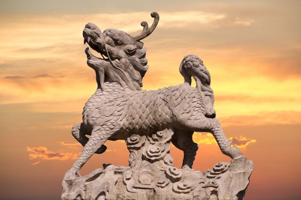 Believers are convinced of the qilin’s magical abilities, as the creature famously foretold the comings and goings of Confucius, one of the foremost philosophers in ancient China. Legend has it that a single-horned qilin spit out a letter (some say it was a jade tablet) foretelling the sage’s birth and his greatness. According to a folk tale, the prophetic qilin appeared before Confucius’s pregnant mother with a chubby infant slung across its back, crashing into her baby bump to release the Chinese saint.