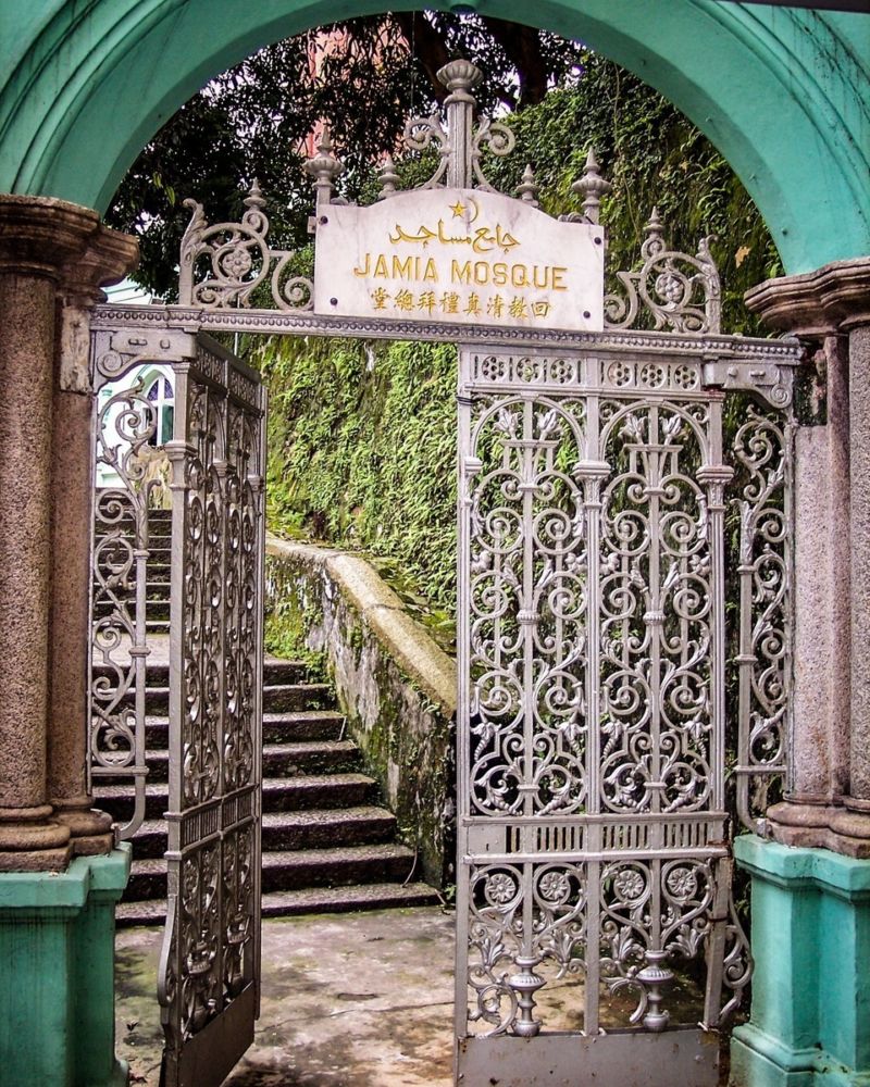 Located in Mid-Levels, Jamia Mosque is Hong Kong’s oldest mosque, and the neighbouring streets of Mosque Street and Mosque Junction are named after this place of worship. It has served Muslim Indian soldiers in the British military, sailors, and Muslim merchants who came to the city from as far as Oman and Iran. It was built in 1890 and has been classified as a Grade I historic building in 2010. The entrance of the mosque is through a wrought-iron metal gate with beautiful curlicues and floral motifs.