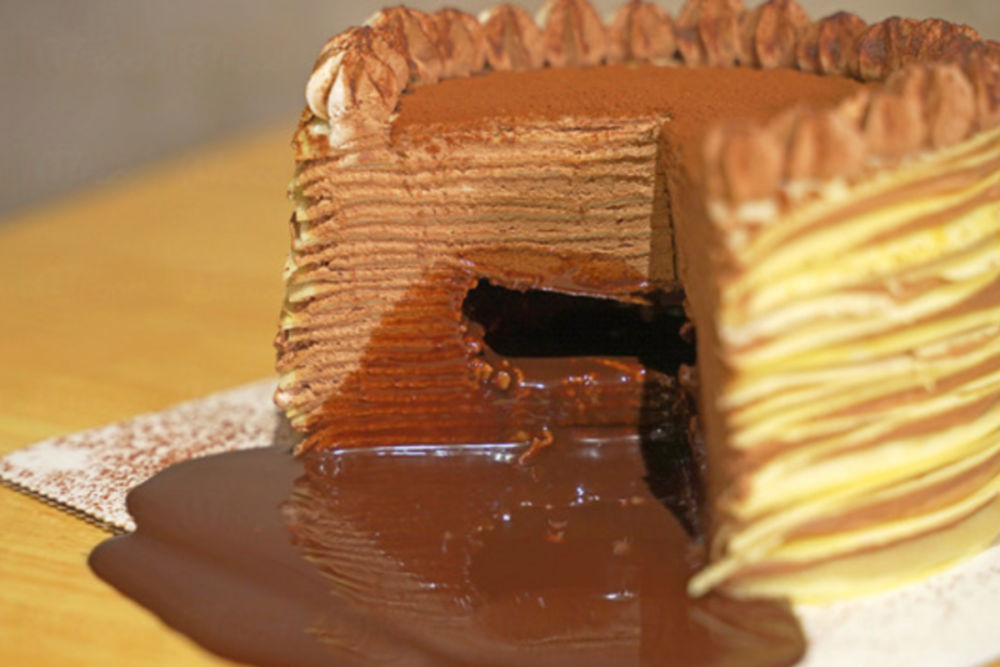 You may be used to having crêpes as a super-thin pancake served flat on a plate with sweet and savoury fillings, but the world of desserts is not going to be satisfied with just one crêpe—we need enough to make a cake!