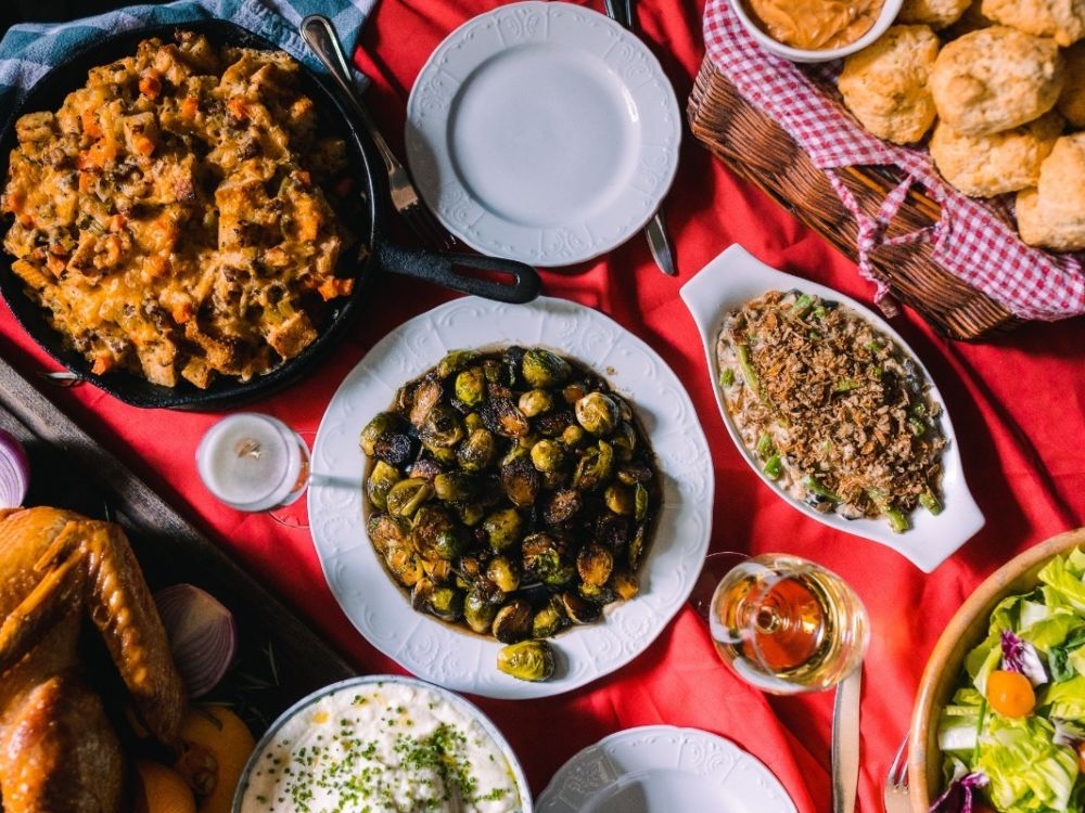 For the star of the feast, choose between a herb-roasted turkey with cranberry relish, cornbread tasso ham stuffing, and gravy ($658) and smoked prime rib with confit shallot horseradish crème fraîche and black truffle veal jus ($898). Don’t forget to round off your meal with Chef Mario’s very own pumpkin cheesecake ($138).