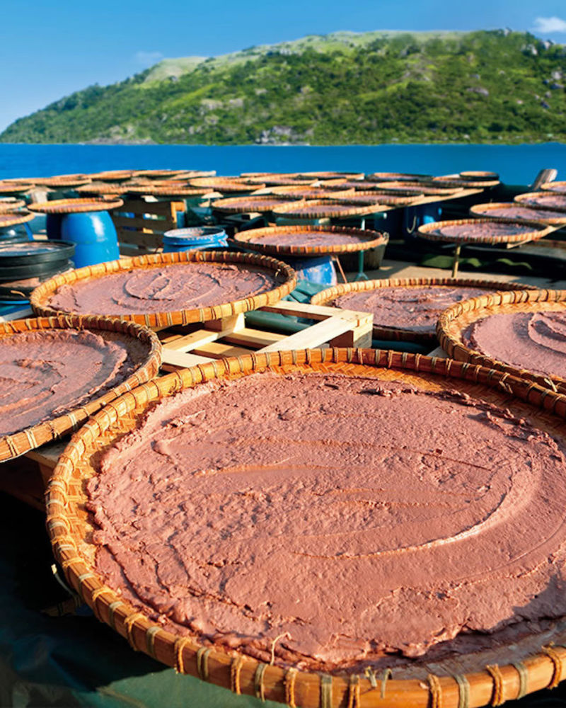Long before krill oil gained popularity as a nutritional supplement, silver shrimp sold for little on the market and was regarded as a “poor man’s food.” Instead of sending the catches to waste, locals preserved it with salt to make into a paste. The paste not only provided villagers with calcium, phosphorus, and iodine, but it also became a staple ingredient often sautéed with rice or pork and, notably, water spinach.