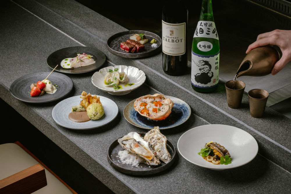 As with his previous concepts, European flavours and influences meld with premium Japanese ingredients to create dishes like Sicilian red prawn tartare with caviar with celeriac purée, slow-cooked French baby pigeon with black truffle and red wine sauce, squid spaghetti with Hokkaido sea urchin, and more.