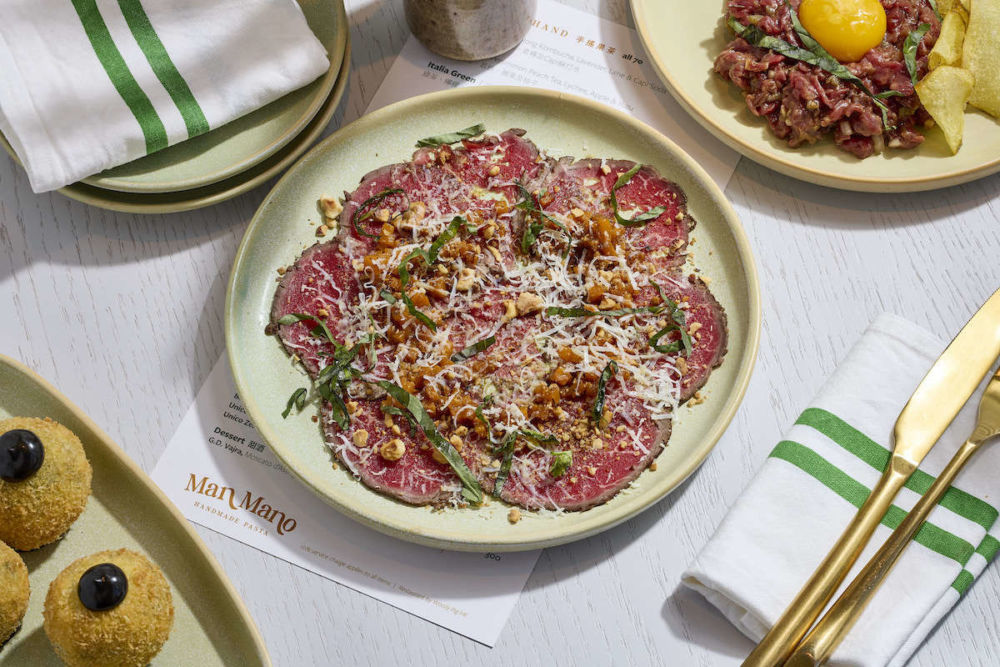 Embrace family-style Italian dining at Man Mano, the newest Woolly Pig restaurant concept to open in Hong Kong. Pastas, pizzas, and the like are all handcrafted in-house to be enjoyed as shared plates between groups. Guests can even watch their pasta dishes come to life through the open kitchen counter! A traditional Mediterranean feel is maintained in the interior space, with arches, terracotta tiles, and exposed beams serving as design features.