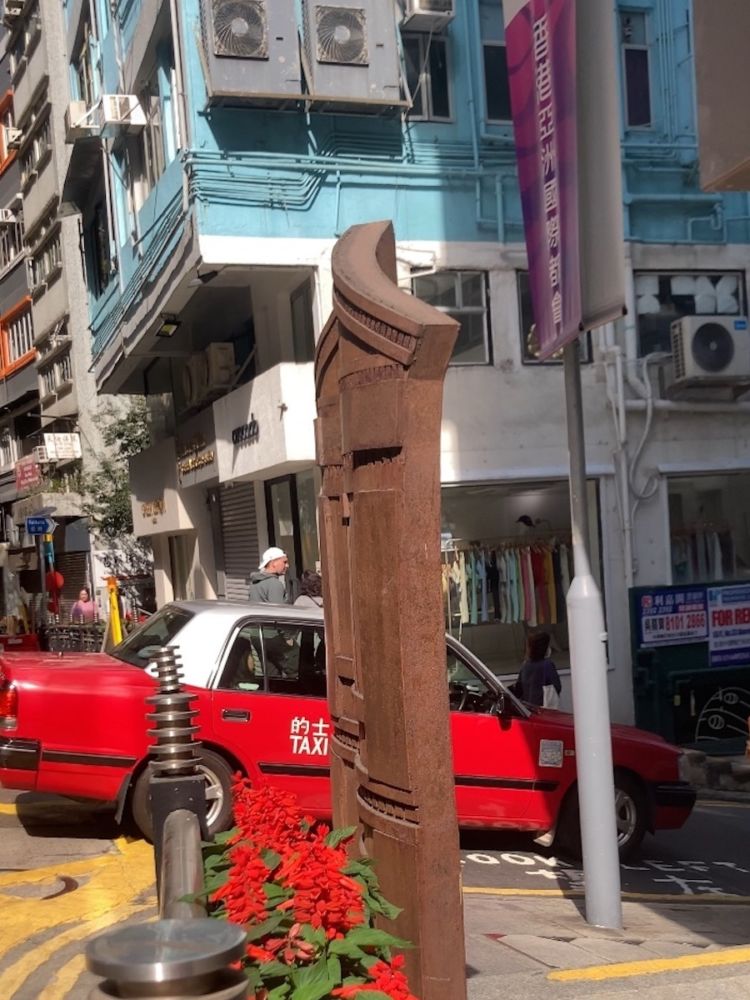 Walking up Lyndhurst Terrace and taking a right on Hollywood Road, keep an eye on the right side of the street. Right at the top of the narrow steps going down towards Pak Tsz Lane Park, you’ll see a tall pole in black and brown adorned with Chinese characters. This art installation by Don Mak marks the location of To Tsai Church, which no longer stands. The convenient location of the church, close to his place of study, meant that Sun often gathered by the religious building. Himself a religious person, this simple piece is a representation of how Christianity influenced the revolutionary figure.