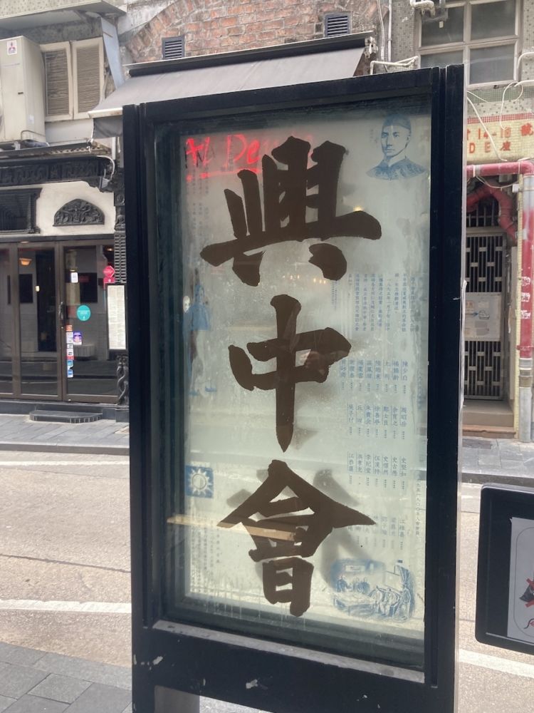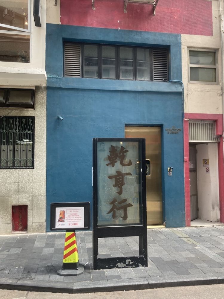 Continue walking along Staunton Street. In between bar and restaurant fronts, right in front of The Poet bar, you will find an installation by Don Mak. Resembling signage, the tall piece easily goes unnoticed. It marks the original site of the Xingzhongui headquarters in Hong Kong. Xingzhongui was a revolutionary organisation that led multiple failed uprisings, including the one that drove Sun into exile. The group would meet on Staunton Street, covering the entrance of their office as a club, a convenient hideaway in this busy area.