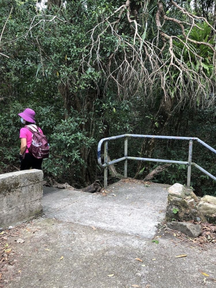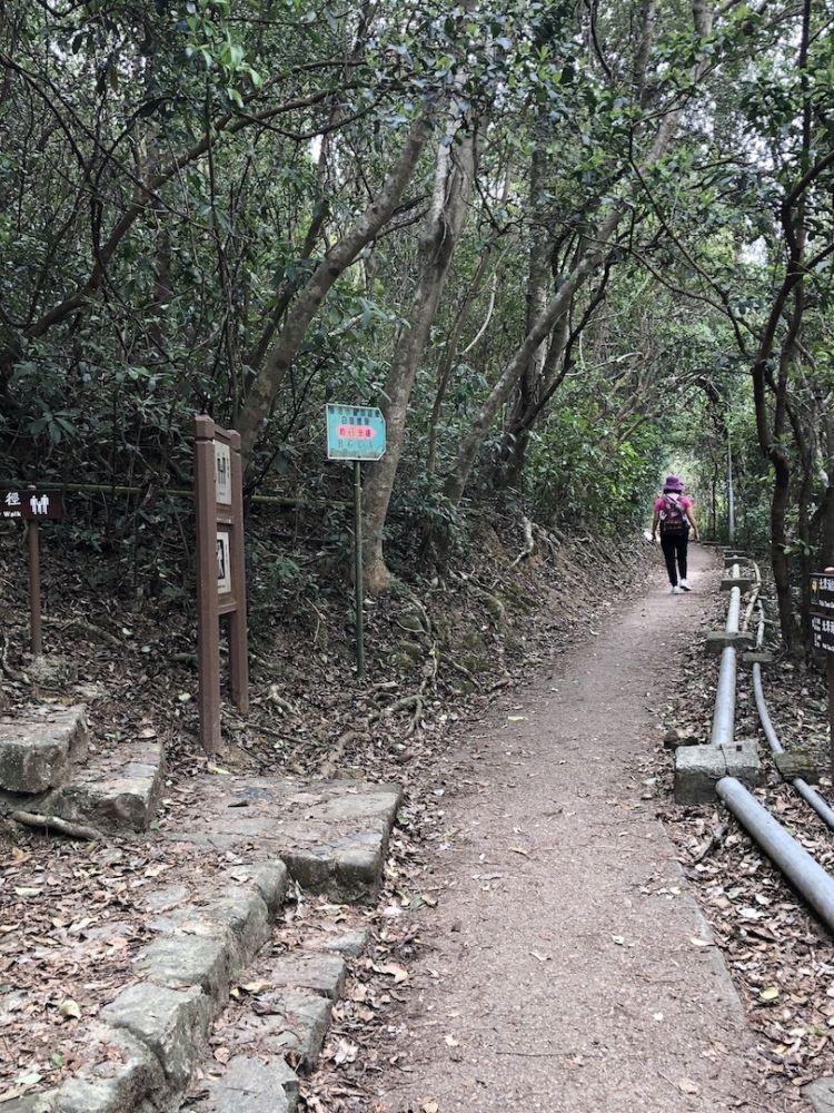 After you alight at Sheung Yiu bus stop, head back in the direction the bus came from on Tai Mong Tsai Road—do not walk in the direction for the MacLehose trail. You will pass a small public rubbish centre, with a little store-slash-restaurant called Faat Kee Store (發記士多) across the street. Cross the road here and look for the sign for the Pak Tam Chung Nature Trail, and the bridge that marks the entrance. Cross the bridge—the Pak Tam Chung Family Barbecue area will be on your left and the path for the Sheung Yiu Family Walk will be on your right.
