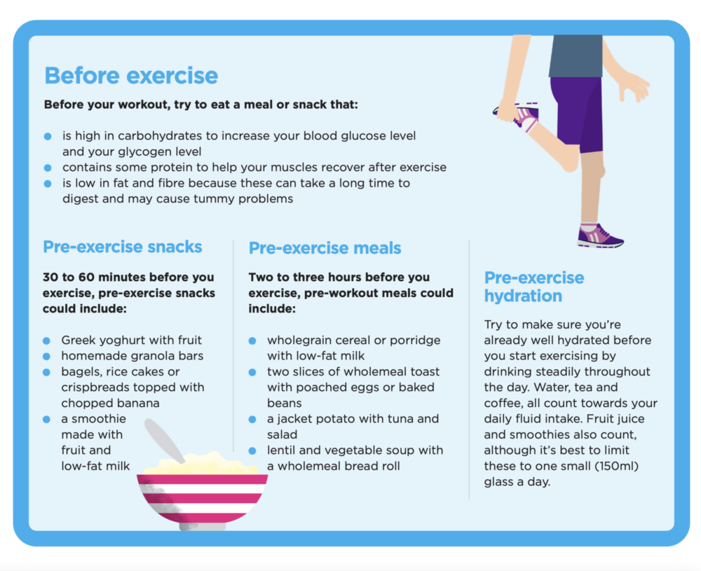 Bupa has compiled their top tips on getting in your main sources of nutrition in the infographic below. Pay attention to what you eat, and how its nutriments will affect your body while you’re running, or even right before and after your workout.