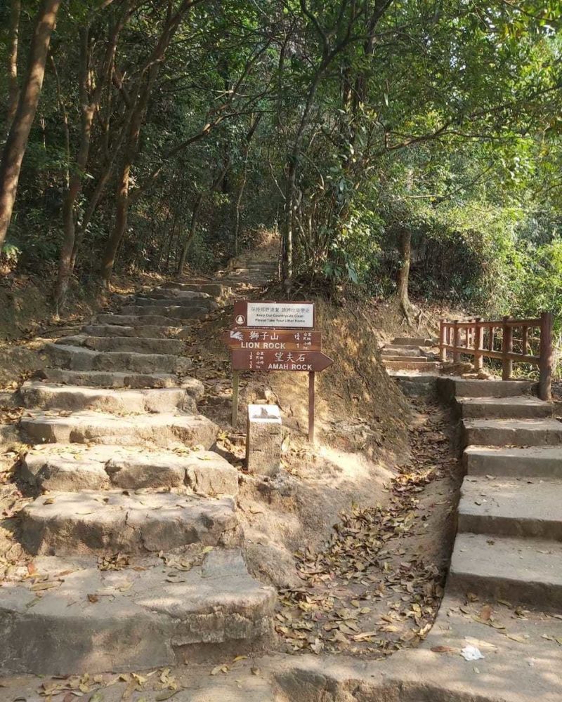 Once you’ve reached the concrete road along the catchwater drain, cross the small footbridge and proceed up the steps until you come to a Y-junction. Here, you’ll likely spot some other hikers taking the path to the left to head up the ever-popular Lion Rock, but we’re turning right to make the ascent up Amah Rock.