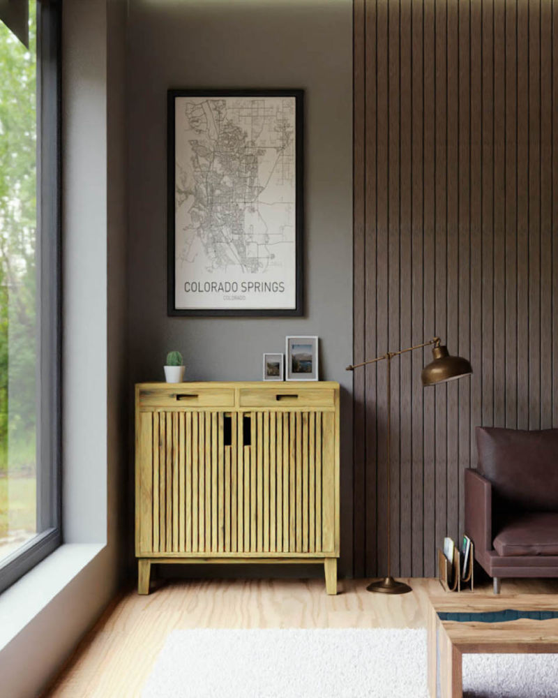Offering a simple and chic solution, Sprue has designed the Knurl shoe cabinet, a neat little piece of furniture that doubles as a sideboard for your entryway. Equipped with two horizontal drawers and two horizontal shelves behind slatted swing doors, the Knurl is one of Sprue’s most popular models. Available in a multitude of different timbers, the timeless design can be customised to suit your preference and existing space.