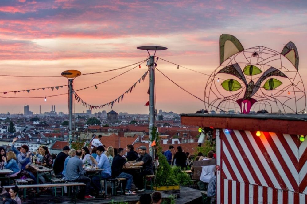 A pairing that just makes perfect sense together, Klunkerkranich is a rooftop-bar interpretation of a Biergarten. Its name translates to “Wattled Crane”, and this colourful and lively spot roosts over the inconspicuous shopping mall of Neuköln Arcaden, offering an incredible “nest” to admire the panoramic Berlin cityscape from.