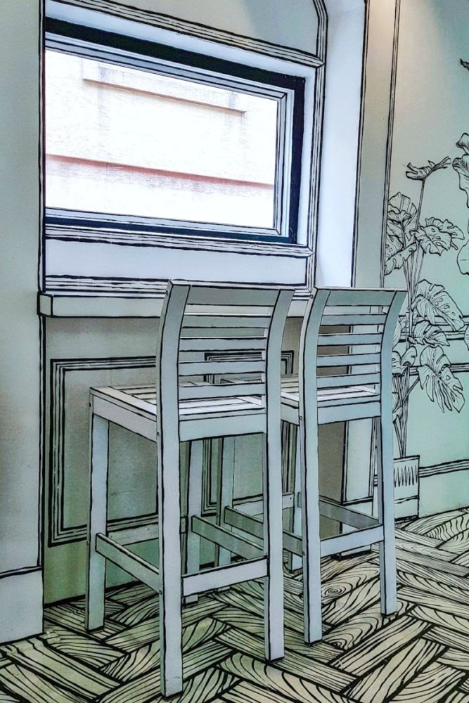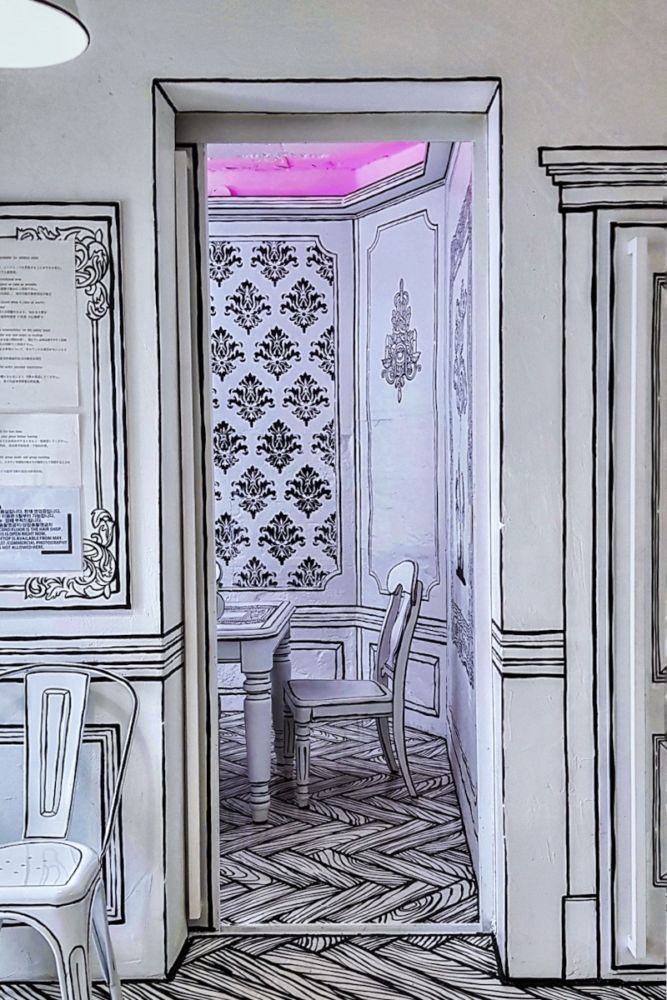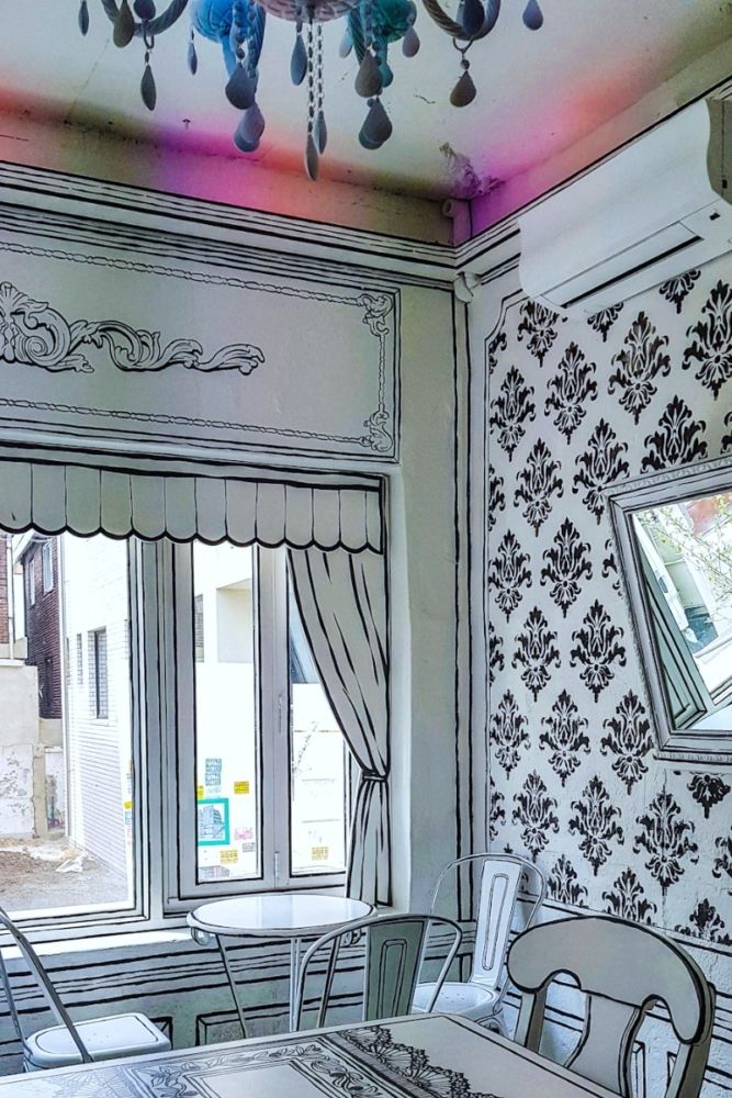 Ever wondered what it feels like to live inside a comic book? Greem Café, also known as Café Yeonnam-dong 223-14, lets you experience just that with its black-and-white cartoonish interiors. Every inch of the ‘drawing café’—from its walls and floors to the tables and chairs, and even the drip mugs and cutleries—is outlined in thick brush strokes for the ultimate two-dimensional illusion.