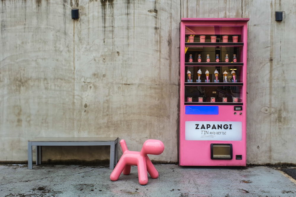 Literally translating to “vending machine,” Zapangi Café is famed for its iconic pink vending machine door that floats in the middle of a concrete wall. It is the most popular coffee shop in Mangwon, a fast-rising neighbourhood soon to join the ranks of Hongdae as one of the city’s trendiest districts.