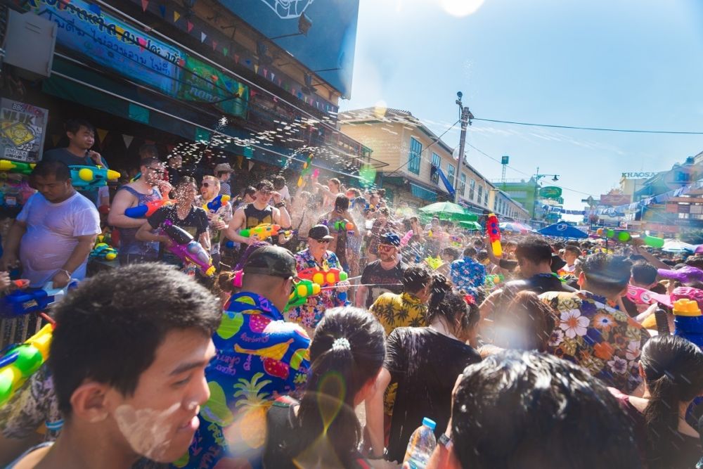 Bangkok is the hub for the largest and most spectacular Songkran celebrations, with key places at Silom Road and Khao San Road. Silom, a popular shopping and entertainment area, attracts hordes of splashers who can take shelter from the scorching sun from the overhead BTS train track. Some observers use the overhead walkway—called the Skywalk in Silom—or the Ratchaprasong area for an elevated view of the water mayhem to avoid getting drenched.