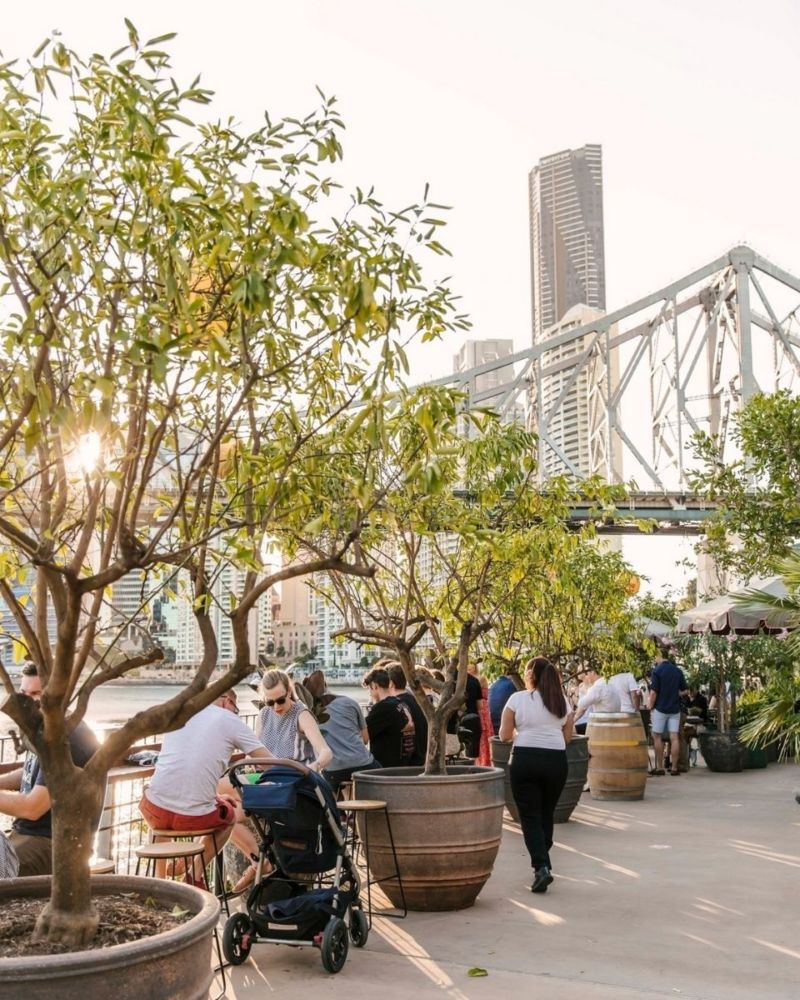 One of the most popular precincts along the river with a perfect view of the historical Story Bridge, take a ride down to Howard Smith Wharves for a line-up of atmospheric al fresco dining spots, like Greca Greek Tavern or the welcoming Gigi’s Homestyle Cooking. Keep it simple with Mr Percival’s, which serves up freshly chucked oysters amongst an array of delectable wood-fired pizzas, burgers, and more.