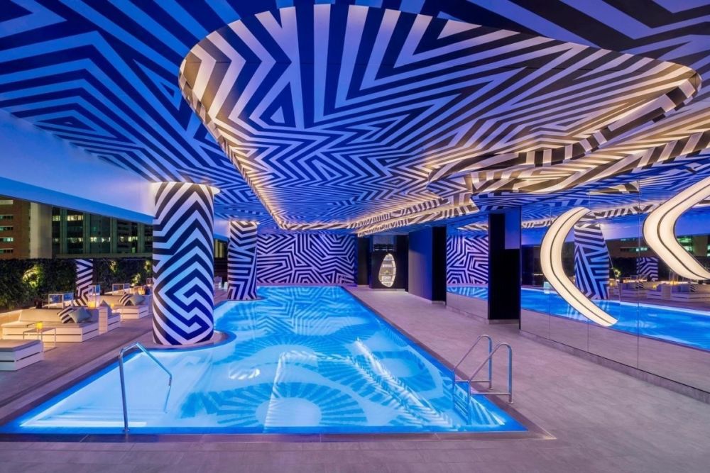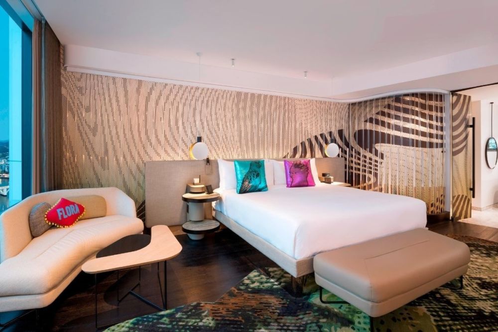 In W Brisbane, the highly Instagrammable WET® Deck pool pays homage to the ebb and flow of the Brisbane River through the use of geometric shapes and cut-out patterns. Prepared to be equally as wow-ed by their vibrant suites, and the glamourous yet wholesome eats at resident restaurant, Three Blue Ducks.