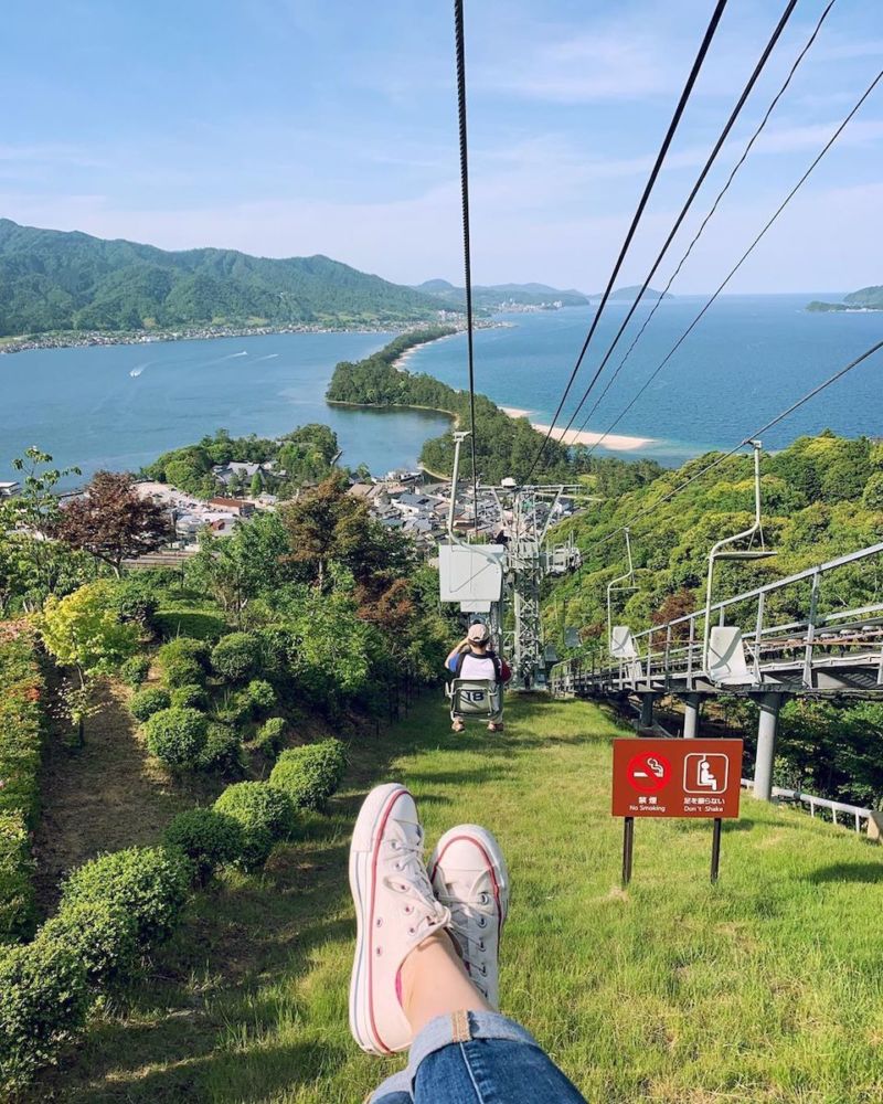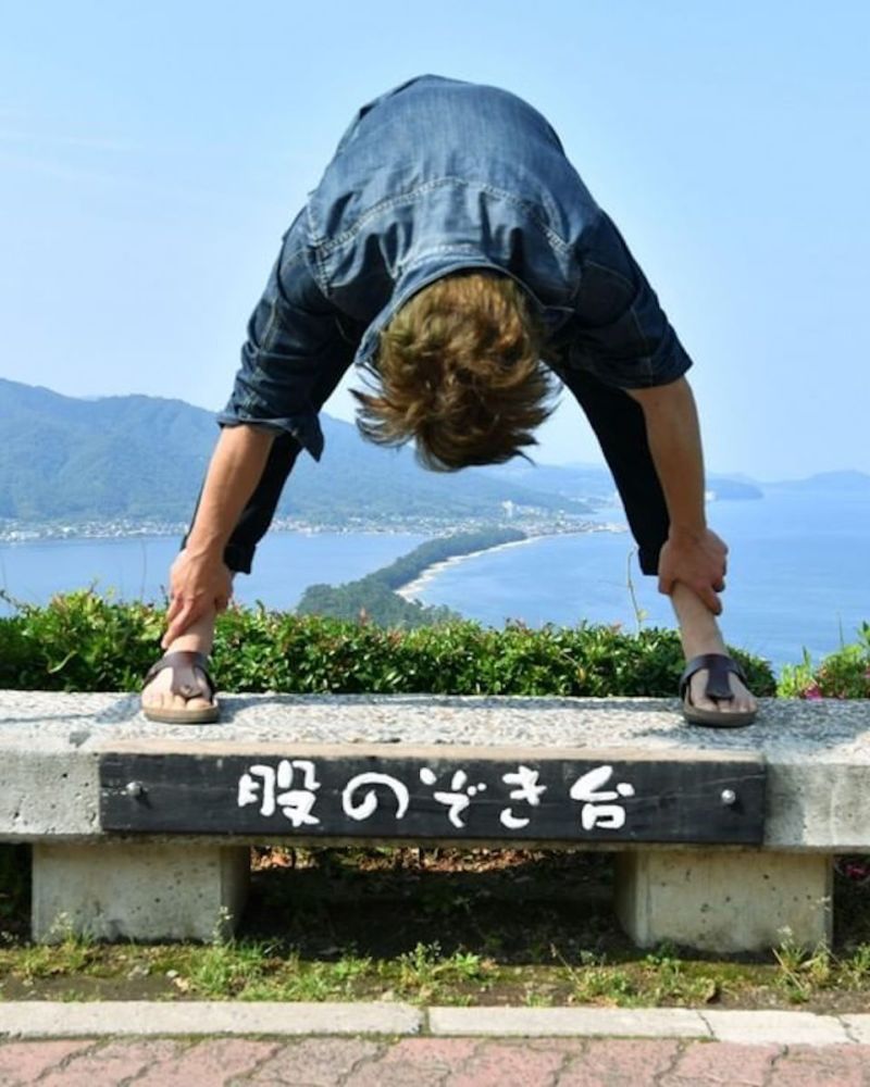 From the observatory, try this unusual viewing position called matanozoki where you turn your back, bend over, and look through your legs towards Amanohashidate. Whoever started this crazy idea believed it may help you see the sandbar from a mythological perspective, resembling a dragon taking flight towards the heavens. Dragon or no dragon, the Miyazu folk proudly claim this to be one of Japan’s “three most famous scenic views” alongside Miyajima in Hiroshima and Matsushima in Sendai.