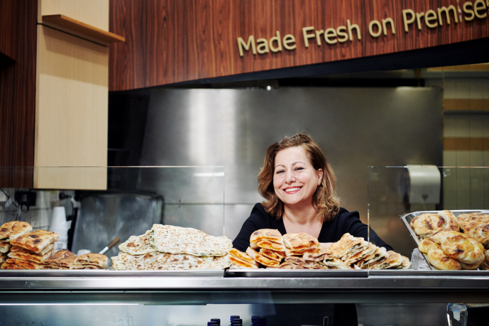 The Bratwurst Shop & Co’s grilled bratwurst comes either on a white or wholemeal roll, and you get your choice of sausage that run the gamut of mild, spicy, cheese, weisswurst, black pepper, chorizo, or chicken and mushroom. From here, load it up with a selection of mustards, sauces, or sauerkraut. It’s a truly classic market experience and one that won’t slow you down when you have shopping to do!