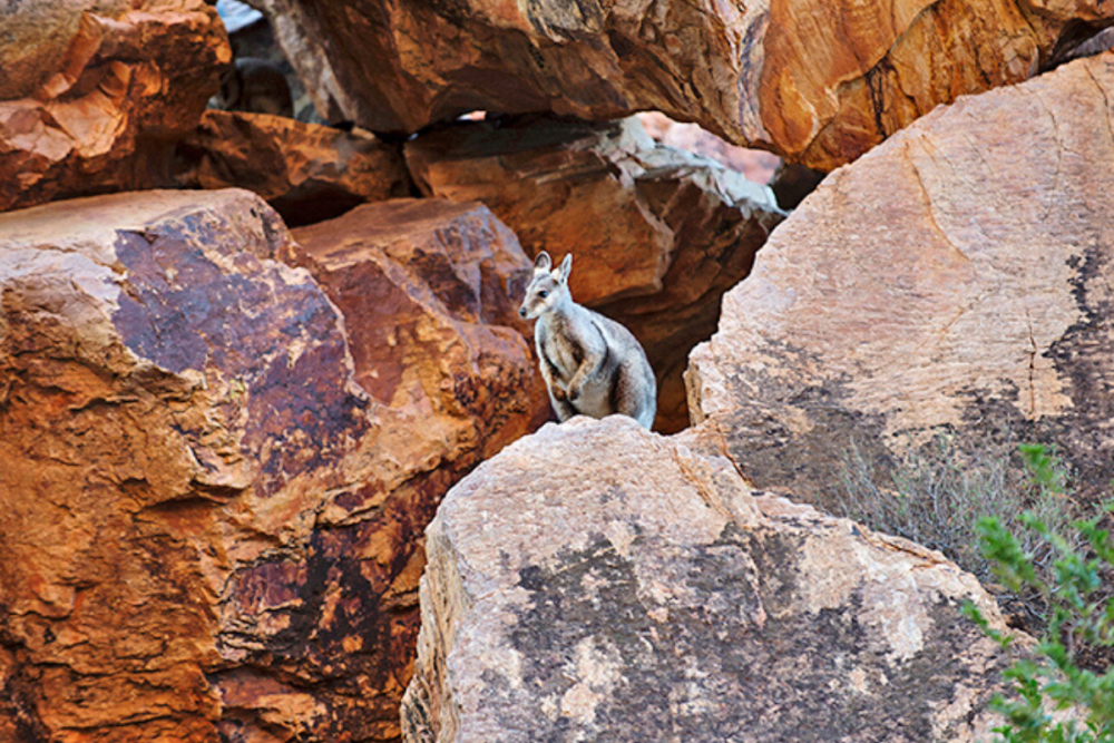 It was when I exited the train into brutal heat and clouds of flies that I really appreciated how comfortable it is to see the Outback from the train! A bus took us to Simpsons Gap in the West MacDonnell Ranges. There is a permanent waterhole at its foot. It is starkly, breathtakingly, and totally unexpectedly beautiful. We even saw a rock wallaby.